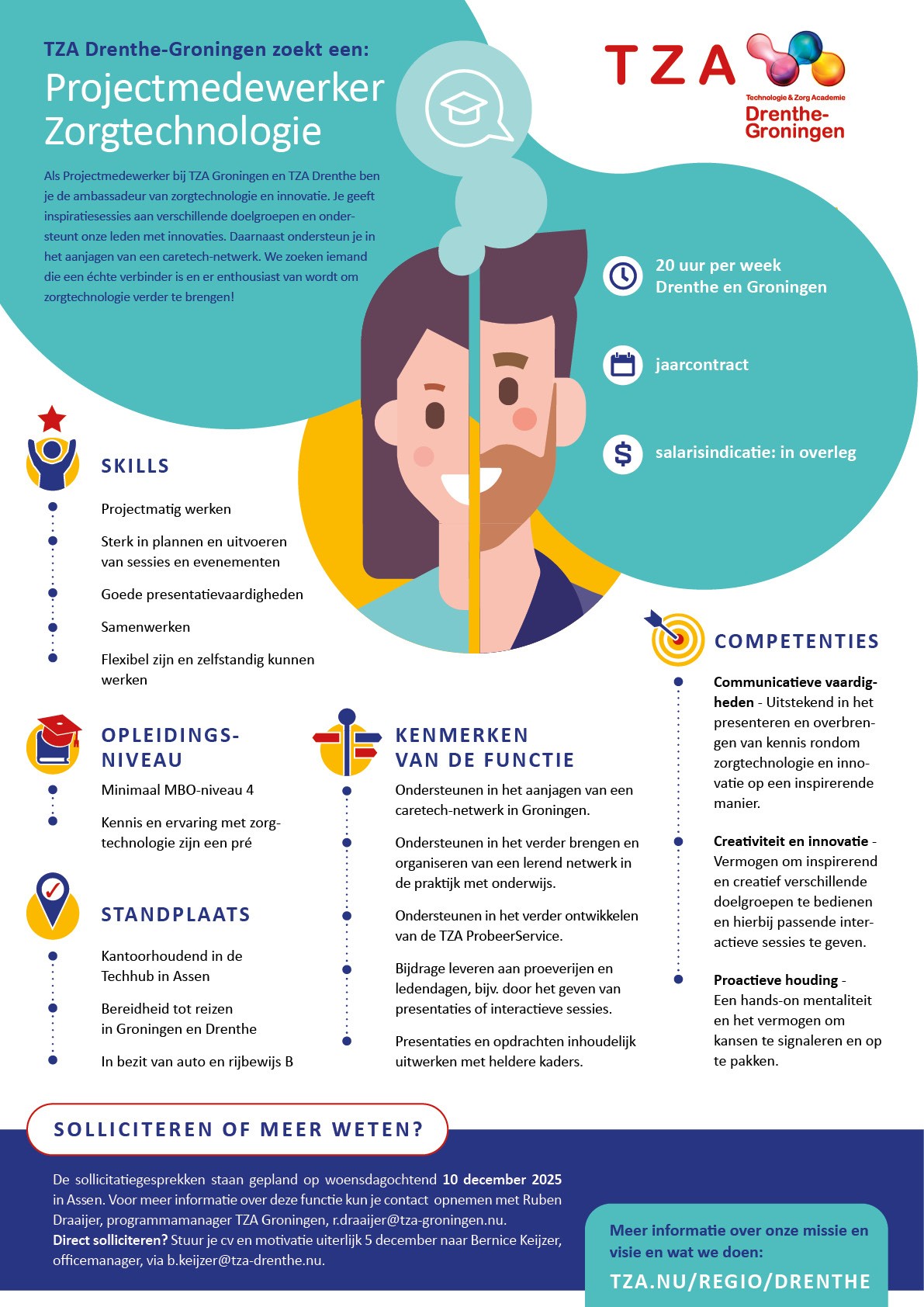 TZA Drenthe en TZA Groningen zoeken een Projectmedewerker Zorgtechnologie